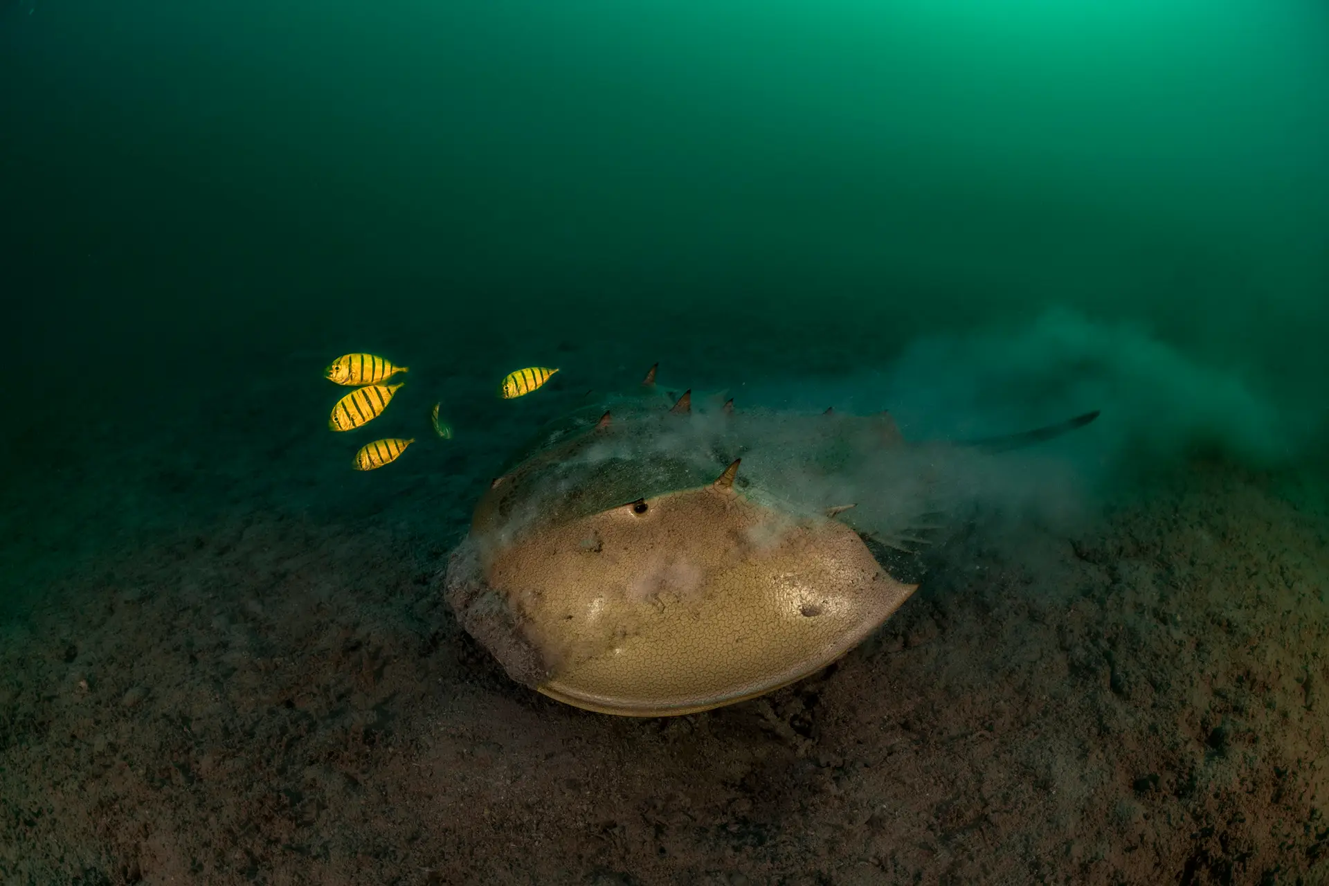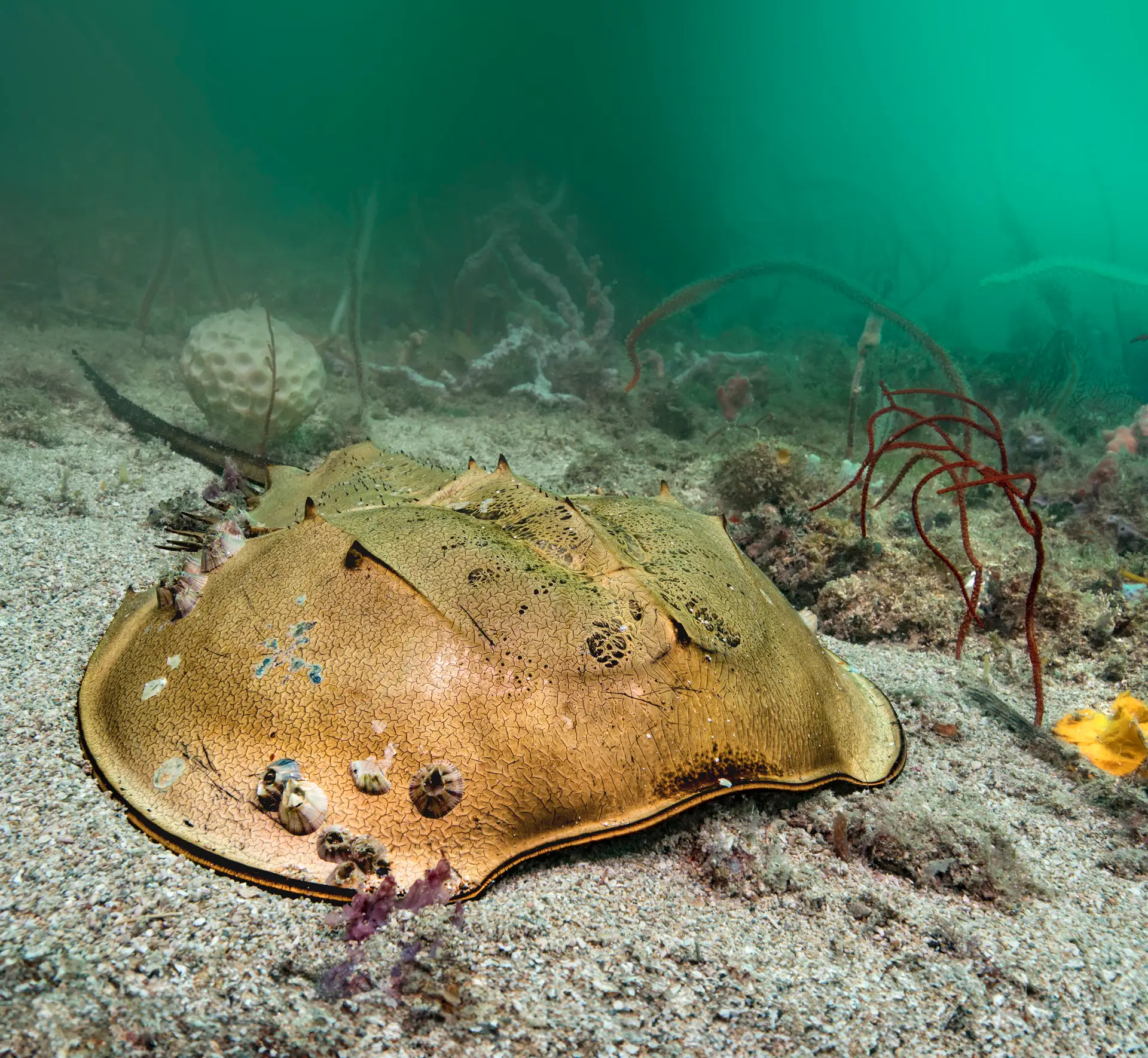 For Mr Ballesta, the purpose of the image is larger than raising awareness of the horseshoe crab through powerful photography. “If just a photo was enough to save the white rhino or the panda, it would have been done already,” he says. He is more interested in capturing a sense of mystery and wonder. “It’s a much bigger source of respect,” he explains. “If people stand in front of the picture and say, ‘Wow, is that alive? Is it from our time?’, then image by image they will come to see that biodiversity is bigger and more important than they thought.”