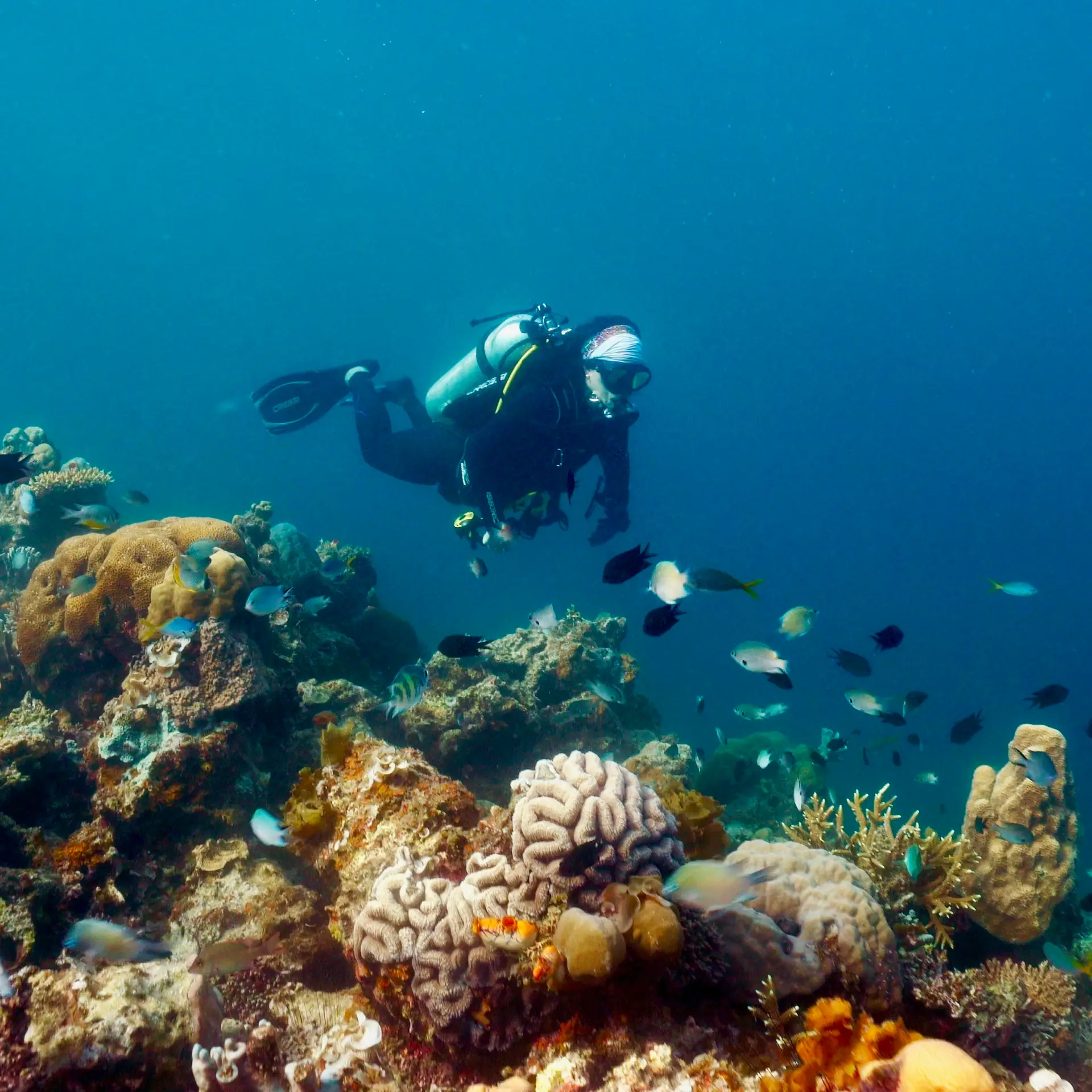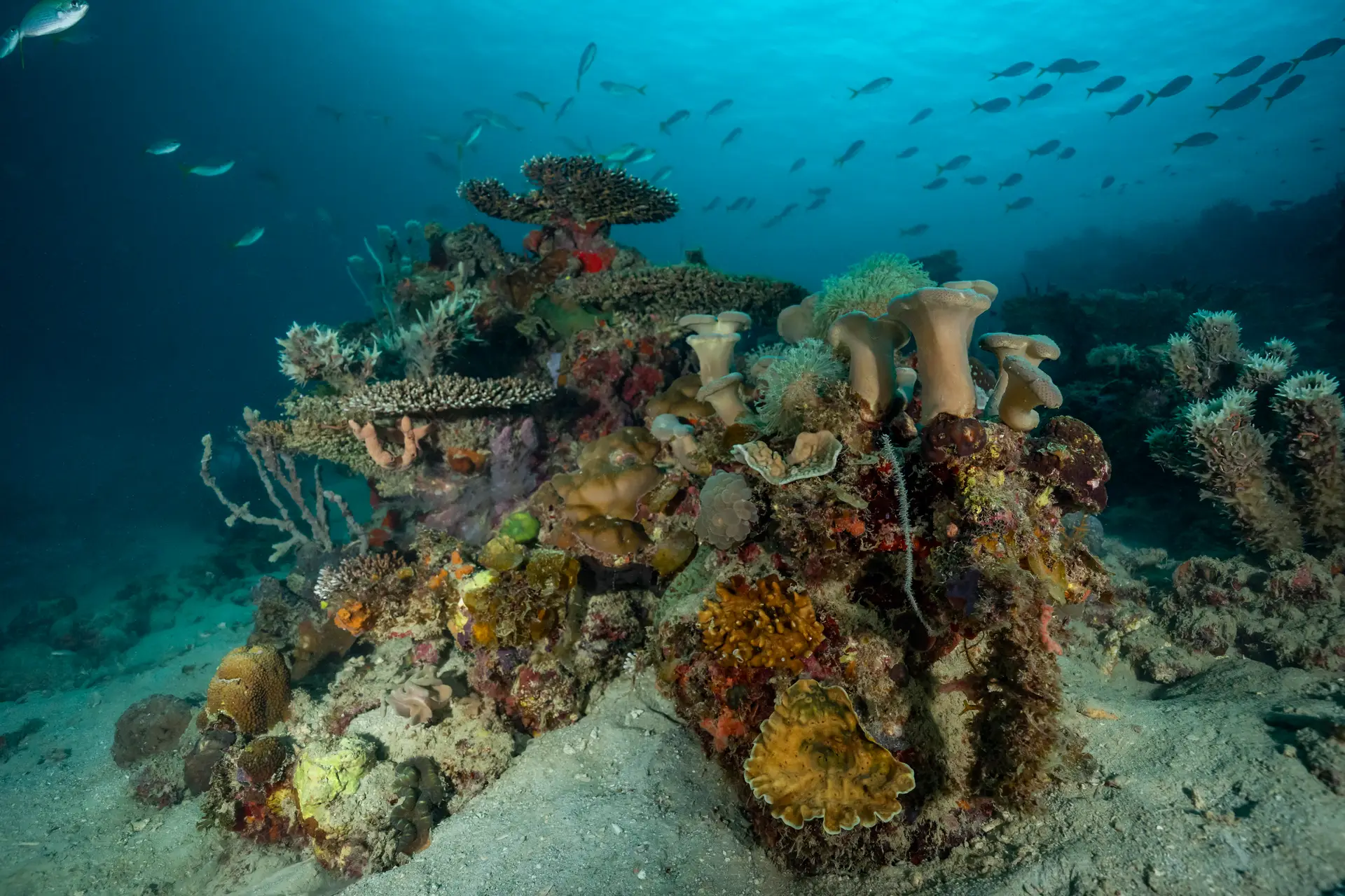Now, thanks to support from an initiative called the Sea Academy, these waters are flourishing once again. Launched in 2021 by French property developer Frédéric Tardieu, with backing from Swiss watchmaker Blancpain, the academy has engaged the local community to create a network of Marine Protected Areas (MPAs) around Pangatalan Island and the wider Shark Fin Bay where it is located, to protect the ecosystem from overfishing and restore the reefs and marine life.